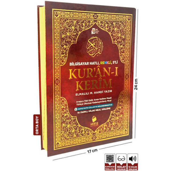 Orta Boy Satır Altı Türkçe Okunuşlu ve Türkçe Mealli Renkli Kuran-ı Kerim