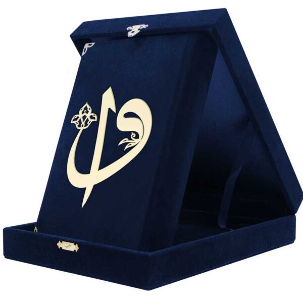 Kadife Kutulu Kur'an-ı Kerim (Rahle Boy, Elif-Vavlı, Lacivert)